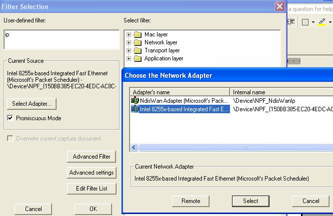 start capturing packets, click the OK button.