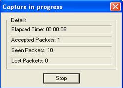 A progress window will be displayed showing how many packets have been