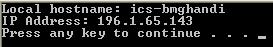 {0}", hostName); IPHostEntry myself = Dns.GetHostByName(hostName); foreach (IPAddress address in myself.AddressList) { Console.WriteLine("IP Address: {0}", address.ToString()); } } } |