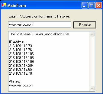 a windows application that allows a user to enter a host name or ip address in