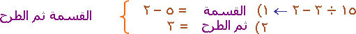 مثل : لتبسيط المقدار (15 ÷ 3 – 2) نتبع التسلسل التالي