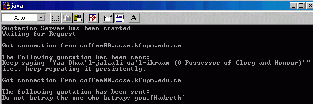 established, the server sends a random quotation from the array to the client