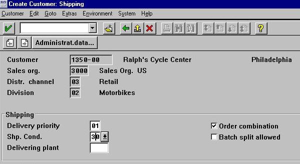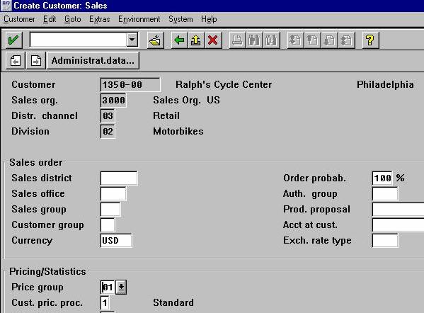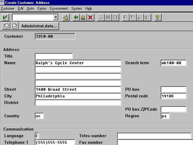 Look at the next series of screens carefully. You do not have to enter information on these screens. They build parts of the customer master record that are necessary for Marketing, Payments, Transportation, Foreign Trade and other information.