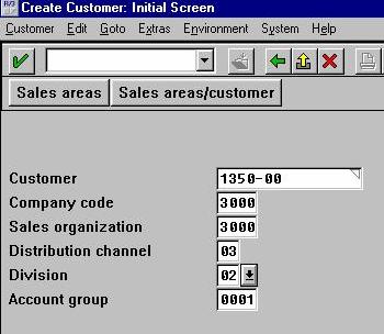 The customer number can be assigned internally by the system. In this example we will use an externally supplied number followed by two digits which correspond to your student number. The company code is the financial reporting entity, 3000 corresponds to MSI Inc. Sales Organization , Distribution channel, division and account group must be provided if they are configured as part of the sales organization. These designations facilitate Profit center analysis through the CO module.