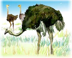 يوصَف الإنسان الذي يهرب من مواجهة مشاكله بالنعامة ، حيث يسود الاعتقاد بأن