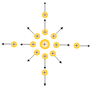 ، ب وتتحرك باتجاه هذه المحصلة ، أي أن وحدة الشحنات الموجبة