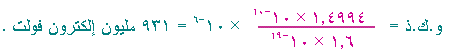 وبذلك تكون و.ك.ذ = 1.666 × 10-27 × (3 × 10 8)2 = 1.4994 × 10-10 جول . ولحسابها بوحدة "مليون الكترون فولت" نقسم على شحنة الإلكترون – ثم نضرب في 10-6