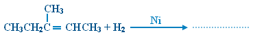لسهولة كسر الرابطة الثنائية في الألكينات وتحويلها الى رابطة أحادية . ومن أبرز تفاعلات الألكينات : 1- إضافة الهيدروجين H2 (الهدرجة أو الاختزال) : إضافة الهيدروجين H2 للرابطة الثنائية بوجود عامل مساعد فلزي مثل البلاتين Pt أو النيكل Ni يؤدي إلى كسرها ، وتتوزع ذرتي الهيدروجين على ذرتي كربون الرابطة الثنائية لتعطي الألكان المقابل .