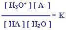 HA فإنه يمكن تمثيل معادلة تأينه كما يلي :