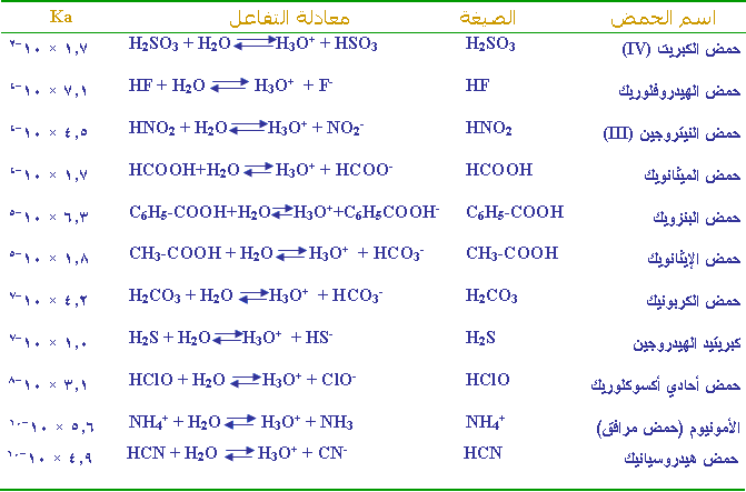 ويوجد لكل حمض من الحموض الضعيفة