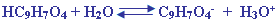 الأسبرين حمض عضوي صيغته    HC9H7O4  ويتأين وفق المعادلة التالية :