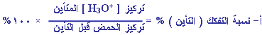 تركيزه ( 0.1 مول / لتر ) وأن نسبة تفكك ( تأين ) الحمض 1.7% . احسب ما يلي :