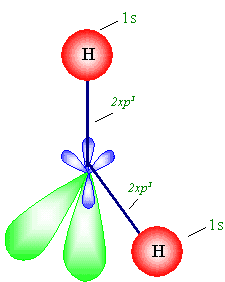 يحدث الترابط بين ذرتي الهيدروجين وفلكيsp3 اللذين يحويان الإلكترونين المنفردين, أما الفلكان الآخران فهما ممتلئين , إذن يوجد في جزء الماء زوجان طليقان من الإلكترونات . يفسر هذا واقع جزيء الماء وهو زاوي الشكل وزاوية الربط فيه حوالي 104.5 ْ, وهو حالة خاصة أيضاً , أما إذا أخذنا الزوجين الطليقين بعين الاعتبار فالشكل هو رباعي الأوجه المنتظم لمعرفة شكل جزيء الماء انظر الشكل التالي .
