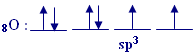 يحدث تهجينsp3 في هذه الذرة وينتج أربع مدارات هجينة , وهذا هو توزيع الإلكترونات فيها :