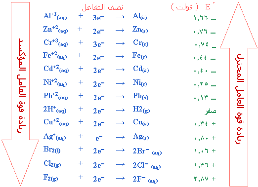 - لمقارنة قوة العوامل المؤكسدة والمختزلة.