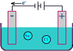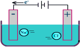التحليل الكهربائي لمصهور كلوريد الصوديوم NaCl باستخدام أقطاب من الغرافيت .