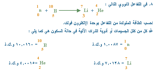 7. علل : كتلة أية نواة دائماً أقل من مجموع كتل مكوناتها على حدة .