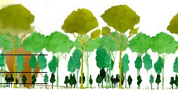 طبقة ثالثة تتشكل من الأشجار الأصغر ، إلا أن رؤوس هذه الأشجار الأصغر