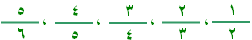 ، 1/2 ، 1/3 ، 1/4 ، 1/5 ، 1/6