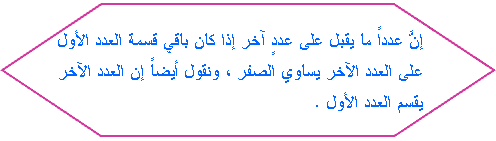 إنَّ العدد ( 15 ) يقبل القسمة على ( 5 ) ، أو نقول أن العدد ( 5 ) يقسم