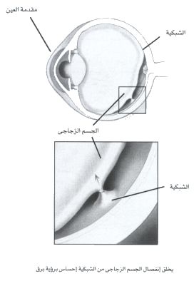 انفصال الجسم الزجاجي من فوق الشبكية فقد يرى المريض وميضاً يشبه البرق