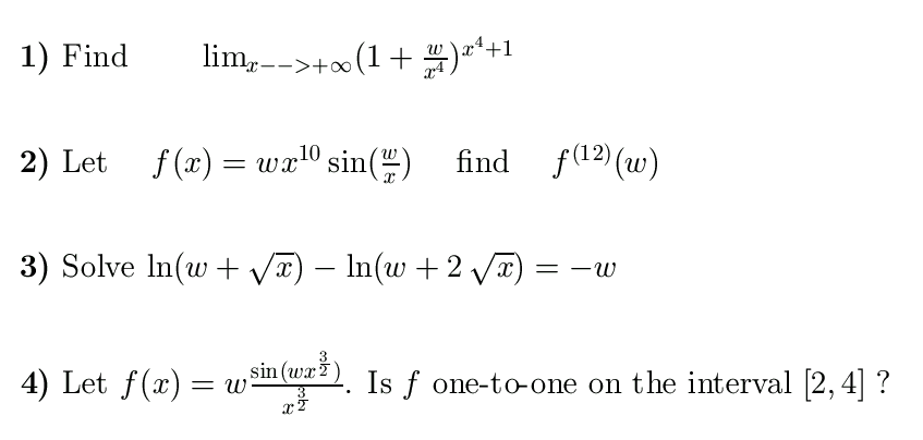 *Let w = ( last four digits of your ID number ) / 1000 |