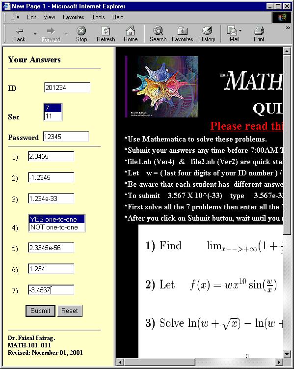 *Submit your answers any time before 7:00AM Tuesday November 6, 2001 |